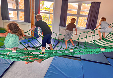 Bis zu 75 Kinder im Alter von 4 Monaten bis zum Schuleintritt werden hier begleitet und gefördert. Die Kinder sind aufgeteilt in vier Gruppen. Eine der Gruppen ist eine U3-Gruppe. In zwei Gruppen sind Kinder im Alter von 2 bis 6 Jahren und in einer weiteren Gruppe werden Kinder im Alter von 3-6 Jahren betreut.